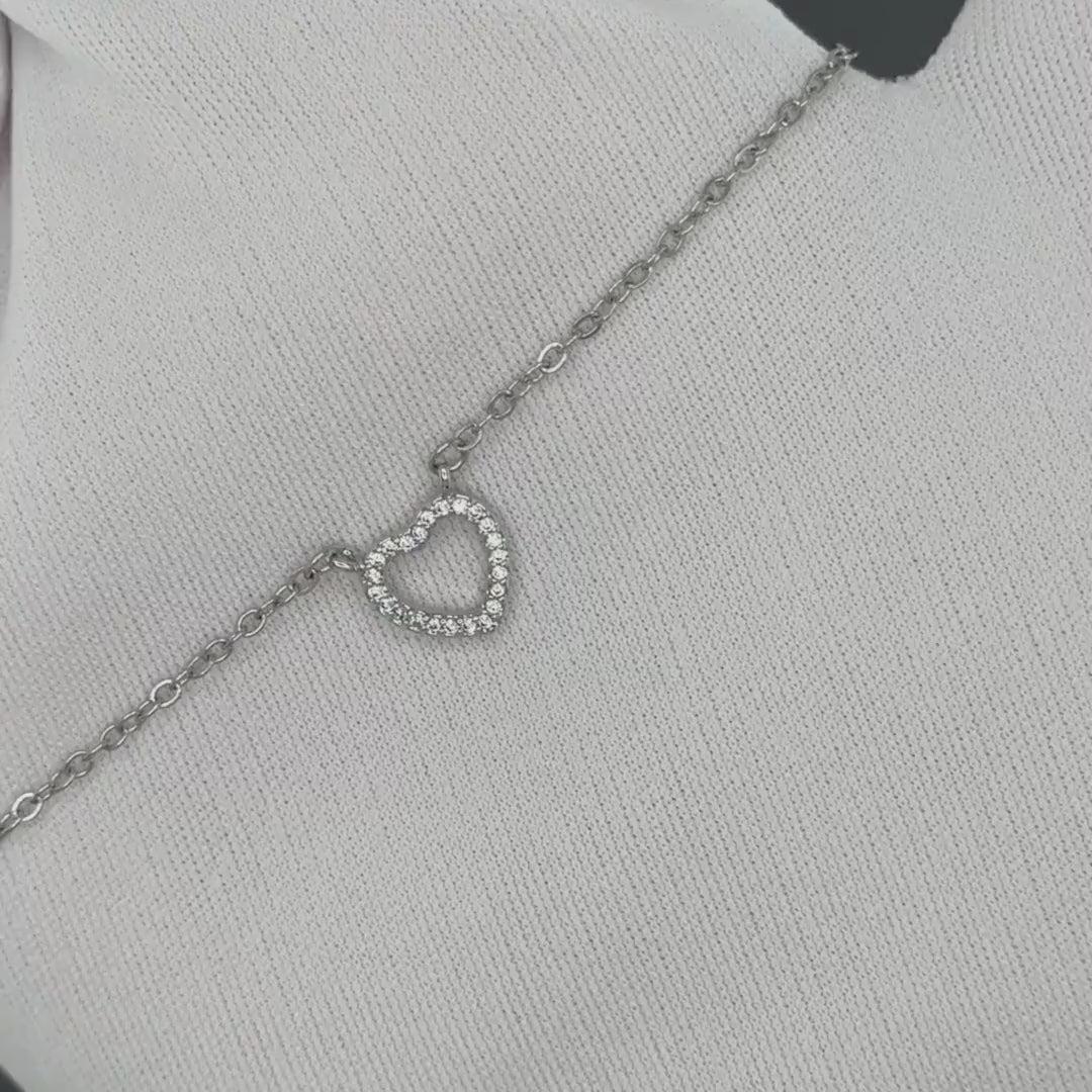 Stainless Steel Hearts Necklace With Cubic Zirconia Crystals